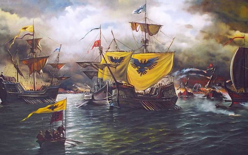 Τέσσερις ευρωπαϊκές μεγάλες γαλέρες αρχίζουν να καταδιώκονται από τον τουρκικό στόλο. Ωστόσο το αποτέλεσμα των ναυτικών αναμετρήσεων εξαρτιόταν λιγότερο από τους αριθμούς και περισσότερο από την πείρα, την αποφασιστικότητα και τις τυχαίες πορείες ανέμων κα ρευμάτων. Οι τακτικές μάχης στη θάλασσα δε διέφεραν πολύ από αυτές της ξηράς. Οι γαλέρες ήταν γεμάτες πολεμιστές, που μετά από μια αρχική βολή επιχειρούσαν να εισβάλλουν στο αντίπαλο πλοίο με σκληρές μάχες σώμα με σώμα.