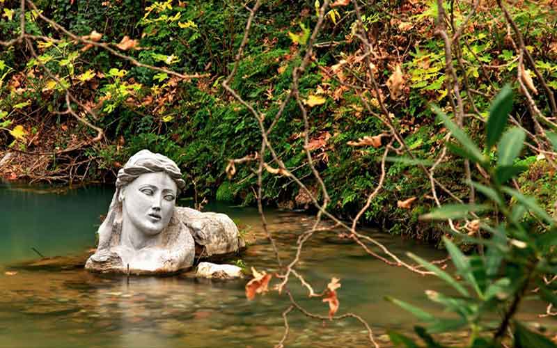 Αυτό το άγαλμα μιας κοπέλας που κρατά μια χήνα στα χέρια της, είναι ένα άγαλμα της Έρκυνας, της Νύμφης. Βρίσκεται στον ποταμό που έχει πάρει το όνομά της, σε ένα όμορφο μέρος που ονομάζεται Πηγές της Κρύας στην καρδιά της Λιβαδειάς.